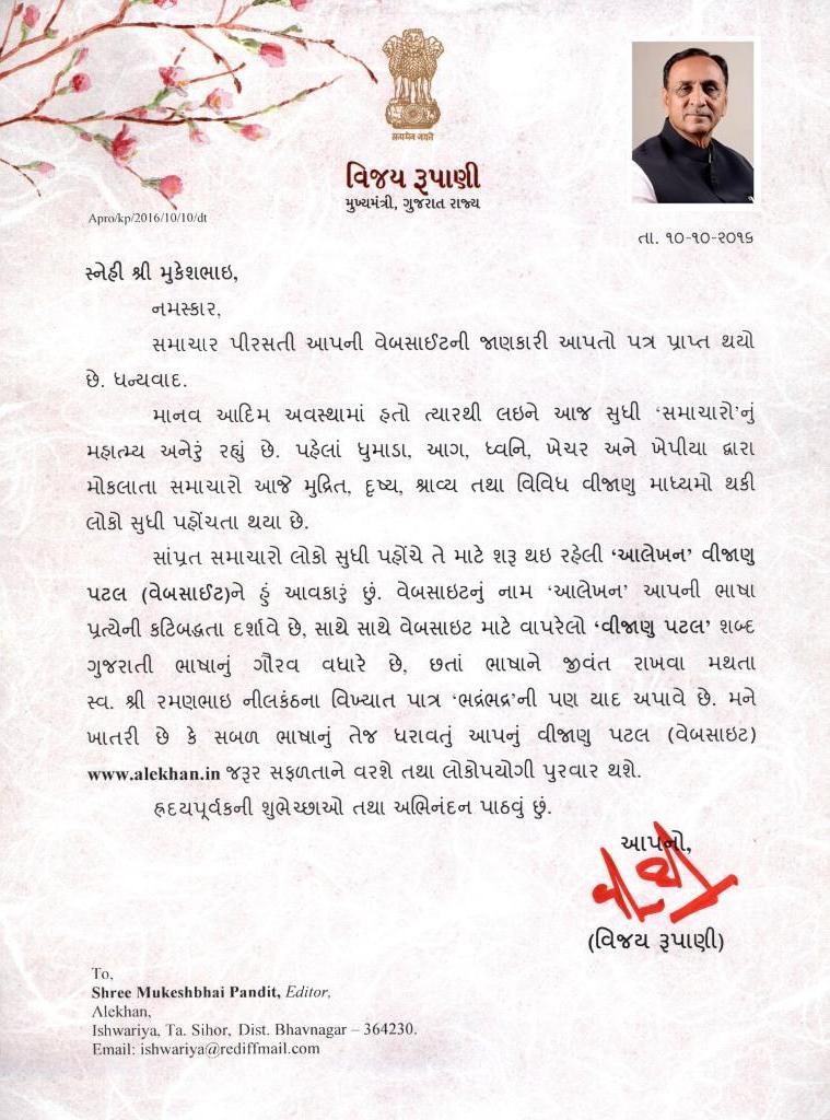 મુખ્યમંત્રી શ્રી વિજયભાઈ રૂપાણી શુભેચ્છા સંદેશો...