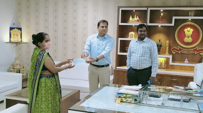 ભાવનગર કલેક્ટર કચેરી ખાતે ભાવનગર જિલ્લાના કલેકટર શ્રી ગૌરાંગ મકવાણા અને જિલ્લા વિકાસ અધિકારી શ્રી વરૂણકુમાર બરાનવાલને મમતા સખી મંડળના પ્રમુખ મંજુલાબેન દ્વારા રૂ. ૧૫,૫૫૫ અર્પણ કરવામા આવેલ છે. આ સમયે મંજુલાબેનએ ગૌરવ અનુભવતા જણાવેલ કે આ સંવેદન સરકાર દ્વારા મહિલાઓ માટે અનેકવિધ યોજનાઓ બનાવી છે અને સરકાર સતત મહિલાઓ આર્થિક રીતે પગભર થાય તે માટે પ્રયત્ન કરી રહી છે ત્યારે આ મહામારીના સમયમા અમને માસ્ક બનાવીને જે નફો થયો છે તેમાંથી અને અમારૂ યોગદાન આપવામા કેમ પાછા પડીએ? આ એક ઉદાર ભાવના સાથે આ મહિલાઓએ મુખ્યમંત્રી રાહત ભંડોળમાં રકમ અર્પણ કરેલ છે.